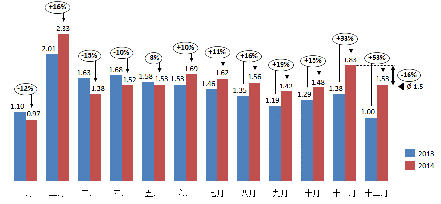 2014年12月份库存系数为1.53