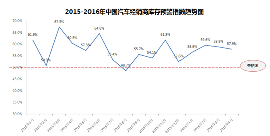 2016年4月份中国汽车经销商库存预警指数为57.9%