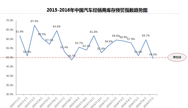2016年7月份中国汽车经销商库存预警指数为49.5%