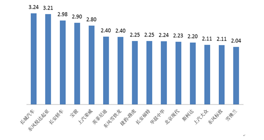4月,15个品牌库存深度在两个月以上,分别是:长城汽车、东风悦达起亚、长安轿车、宝骏、上汽荣威、英菲尼迪、东风雪铁龙、捷豹-路虎、长安福特、华晨中华、北京现代、斯柯达、上汽大众、东风标致、雪佛兰。