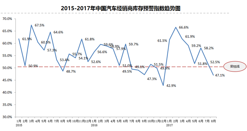 2017年8月份中国汽车经销商库存预警指数为47.1%