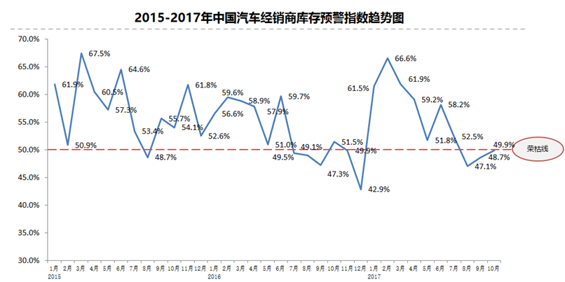 2017年10月份中国汽车经销商库存预警指数为49.9%