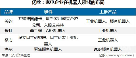 在机器人领域,美的、格力、海尔、长虹纷纷布局。(详细如下表)