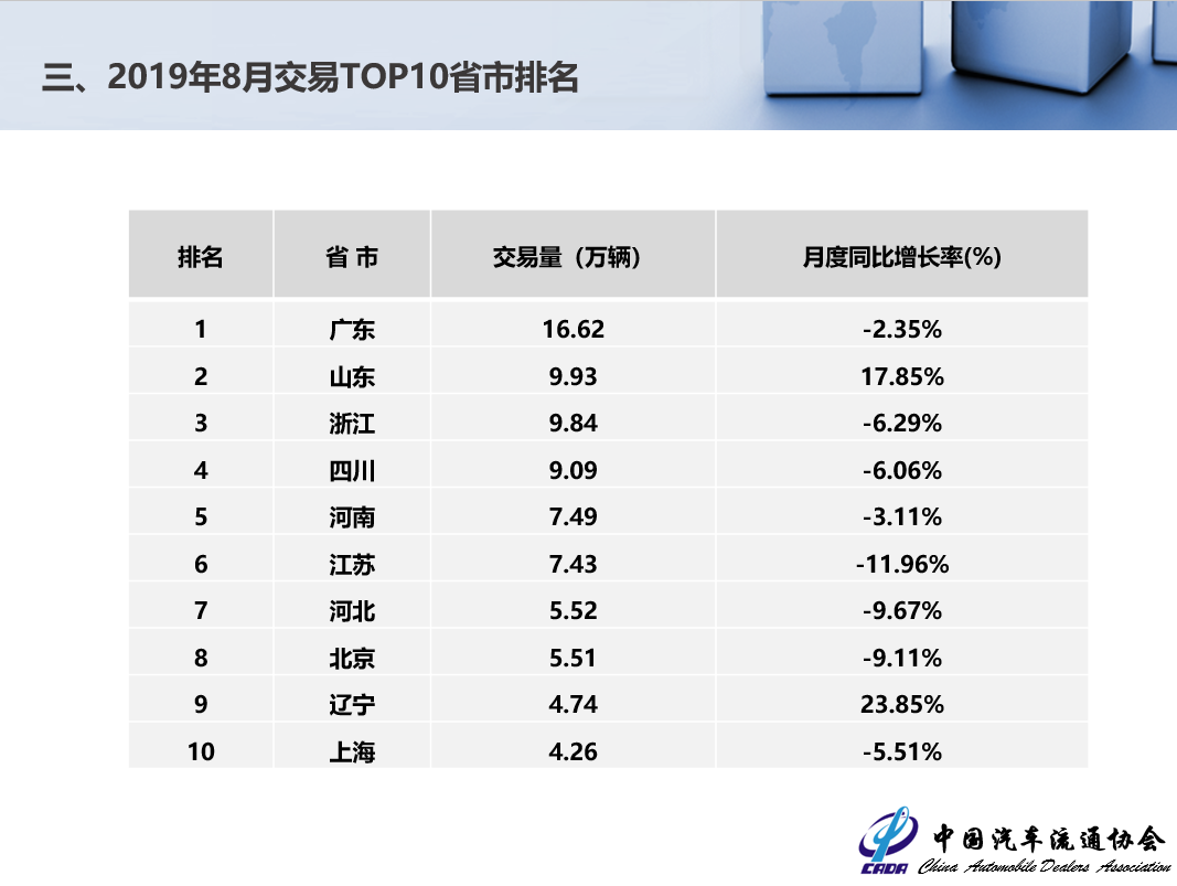2019年8月全国二手车市场分析