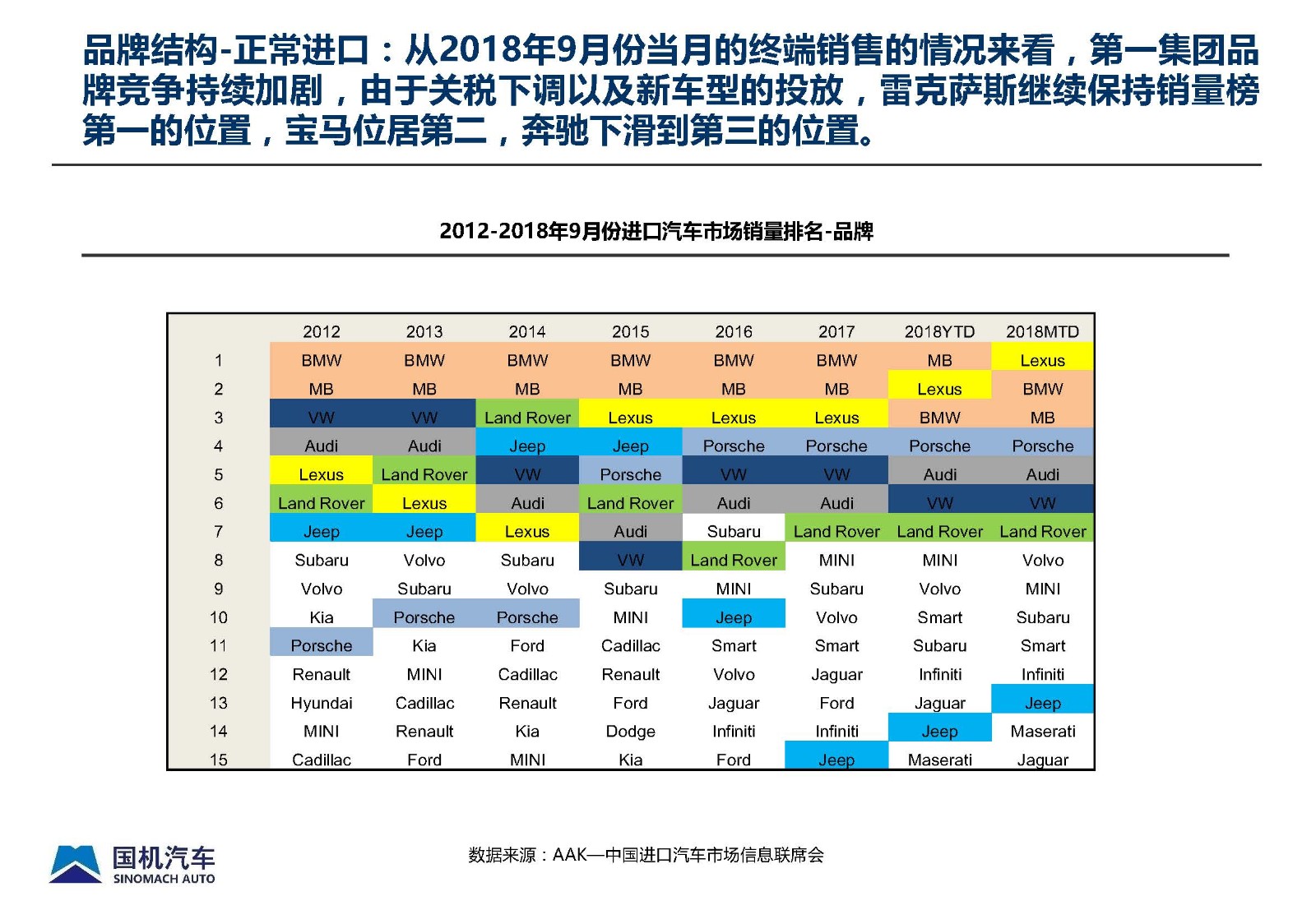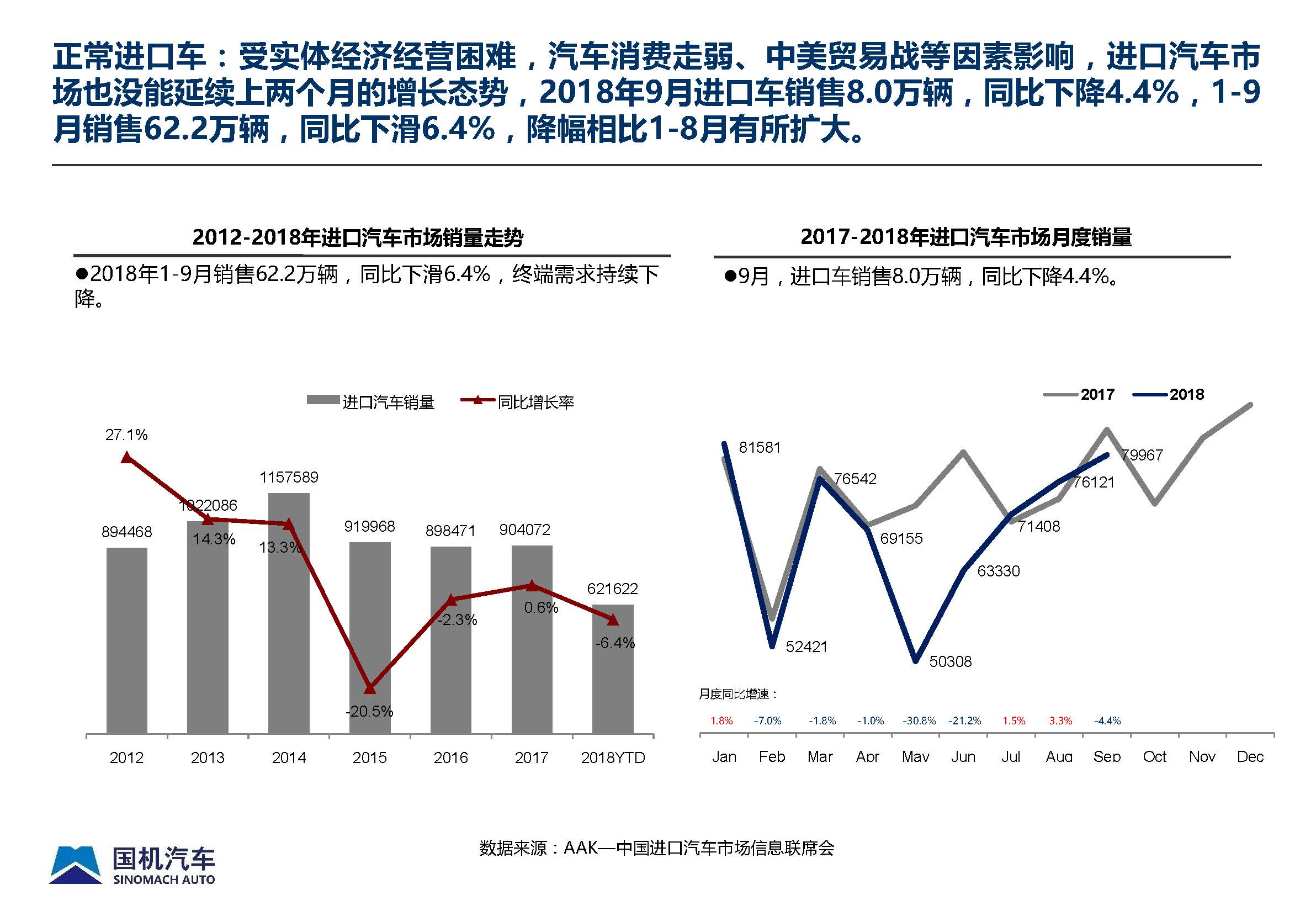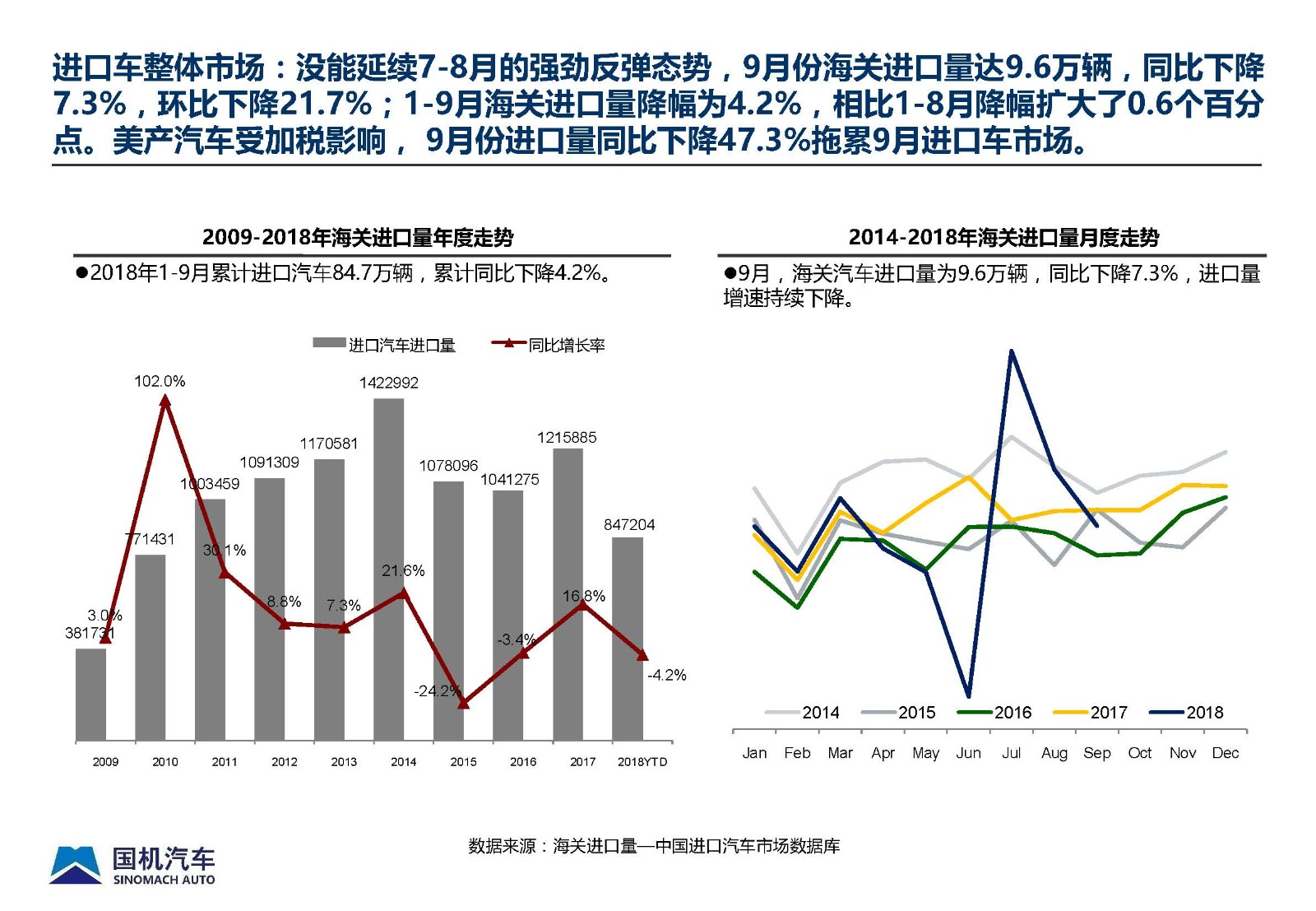 2018年9月中国进口汽车市场情况
