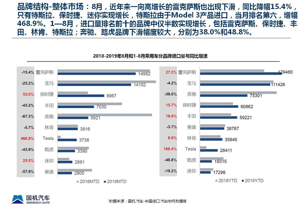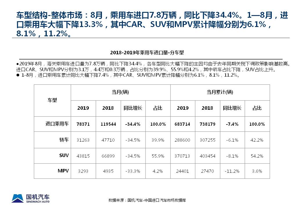 2019年8月中国进口汽车市场情况