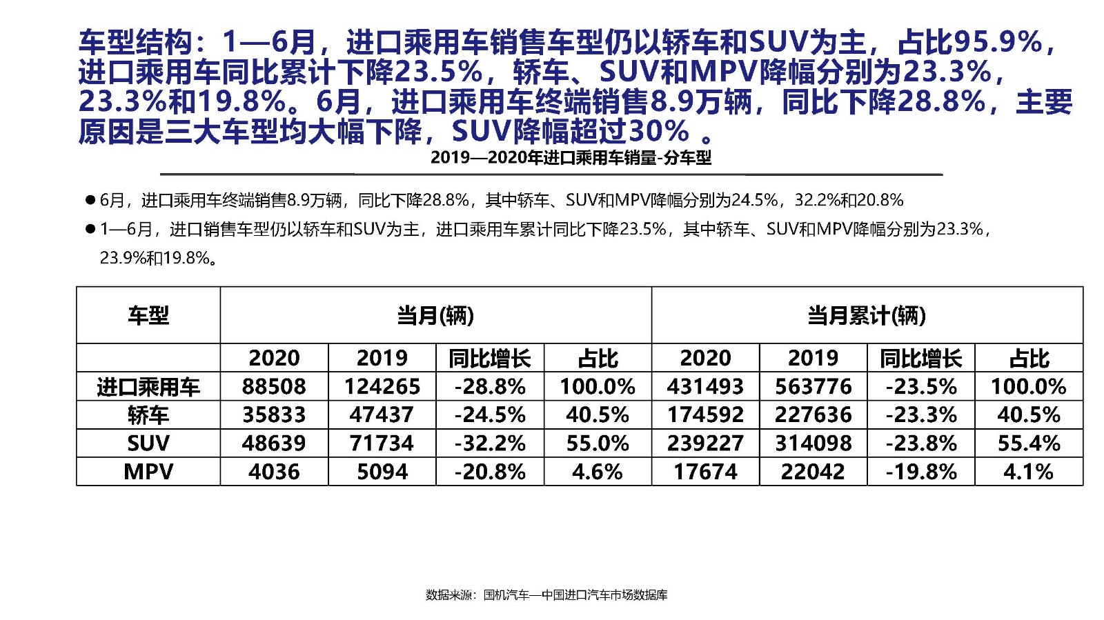 2020年6月中国进口汽车市场情况