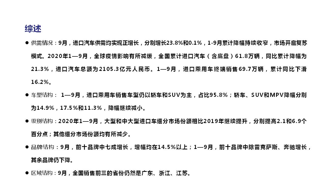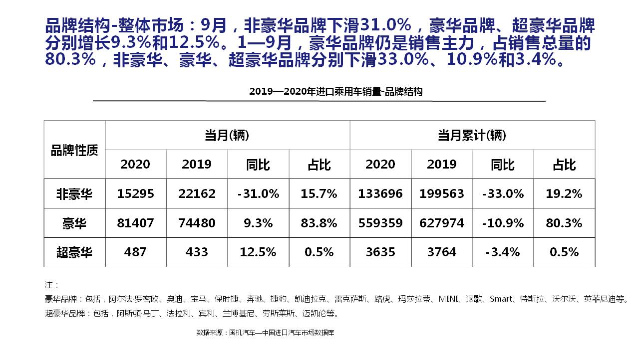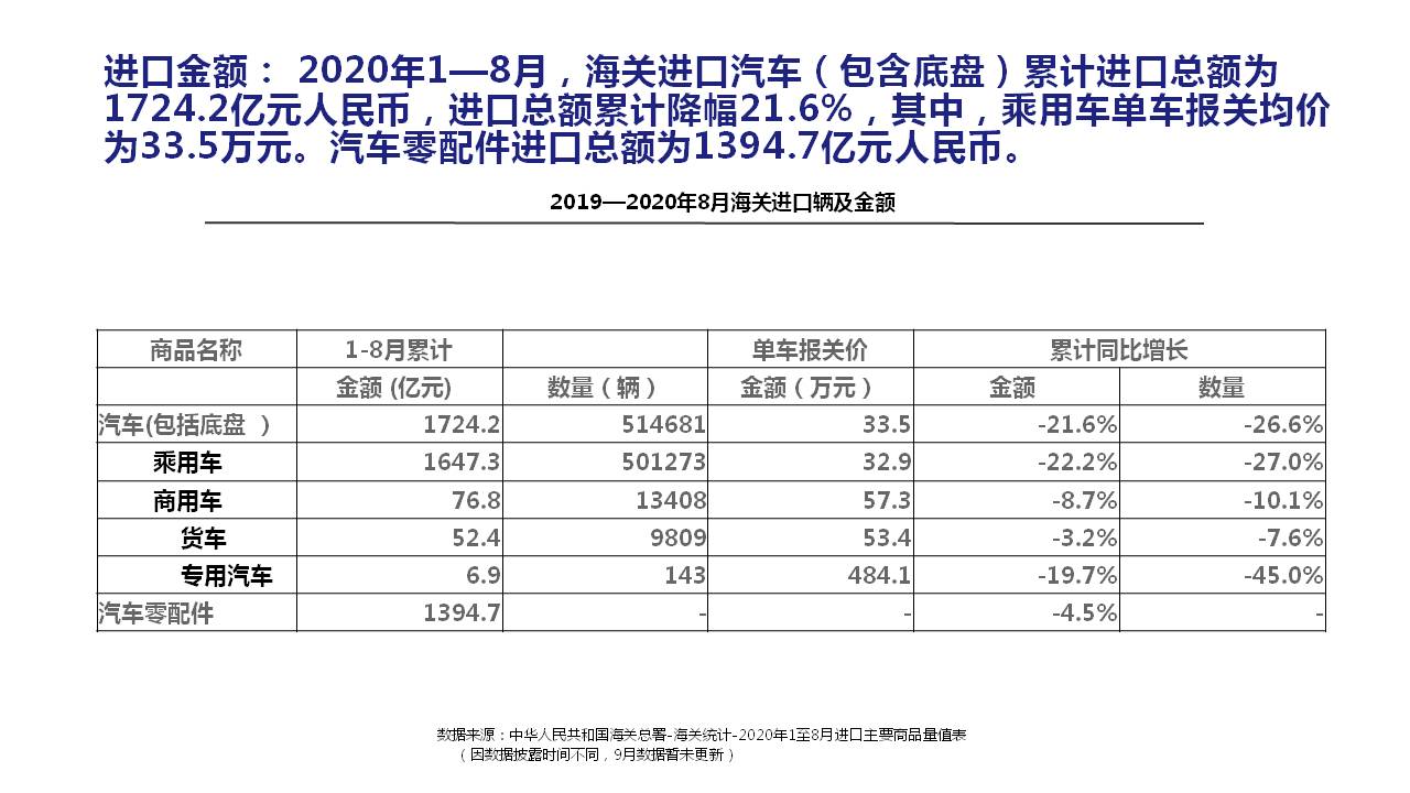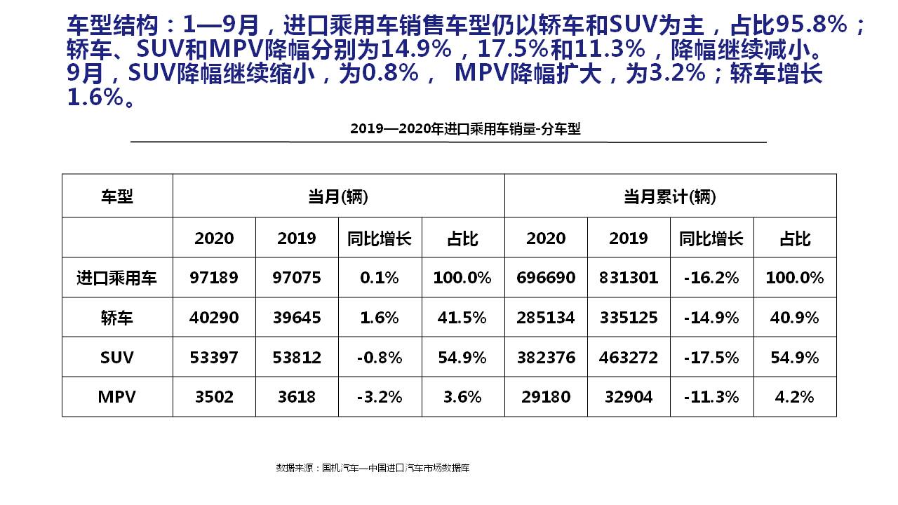 2020年9月中国进口汽车市场情况