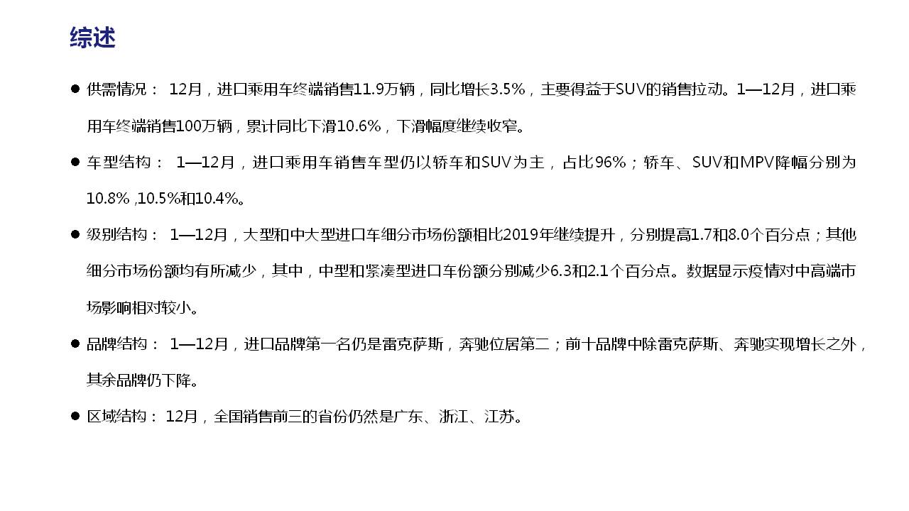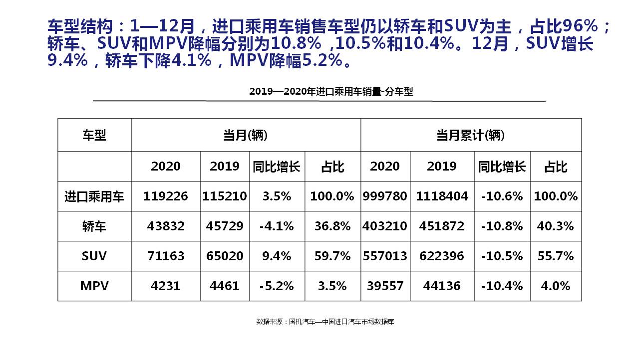 2020年12月及全年中国进口汽车市场情况