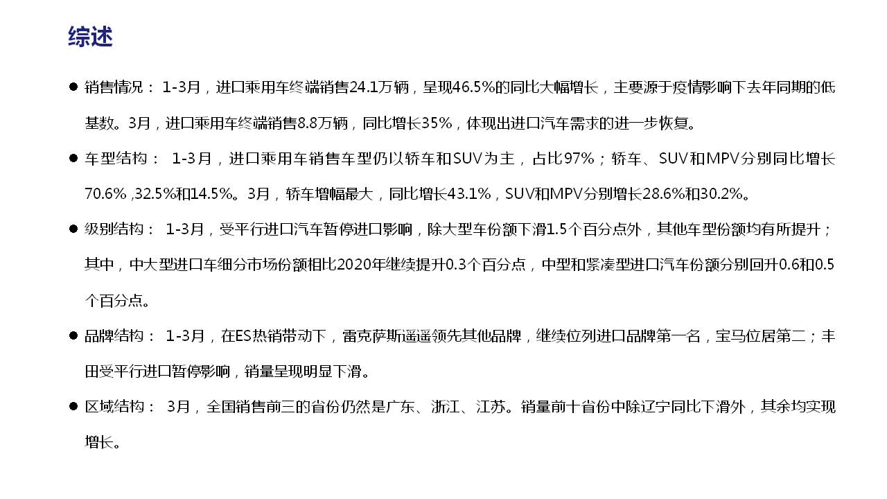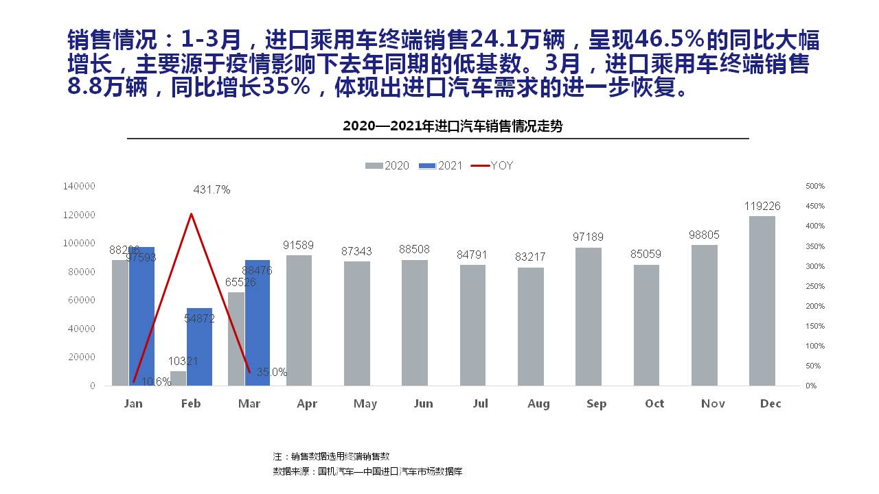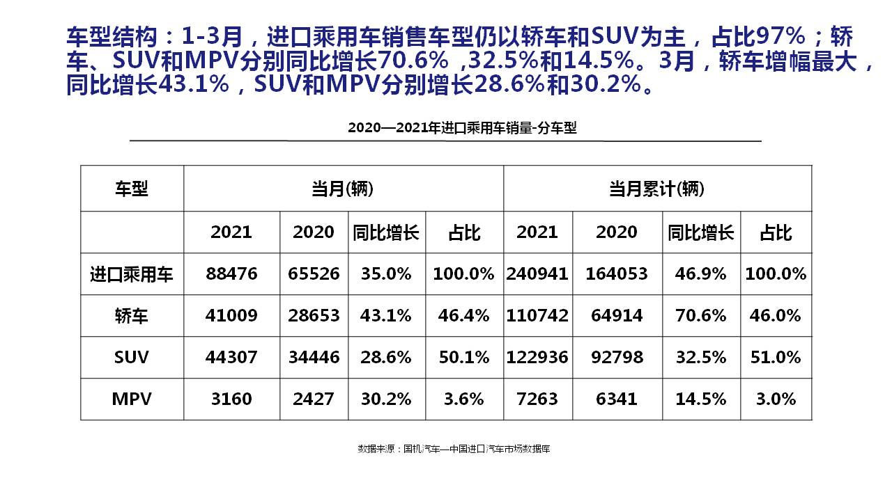 2021年1-3月中国进口汽车市场情况