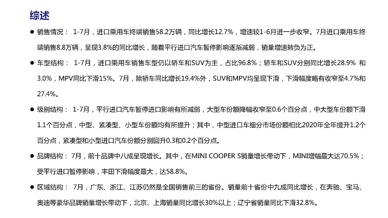 2021年7月中国进口汽车市场情况