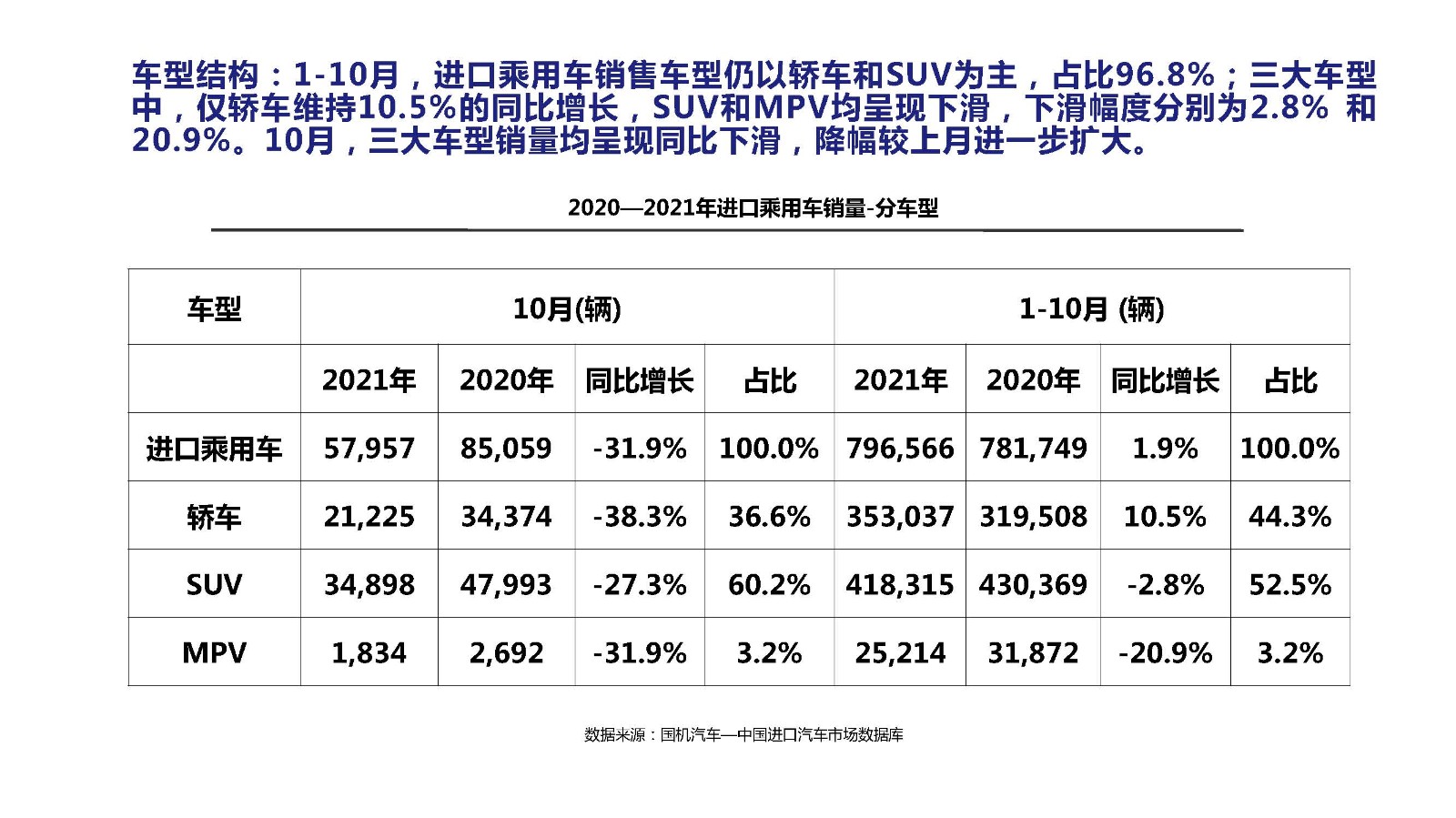 2021年10月中国进口汽车市场情况