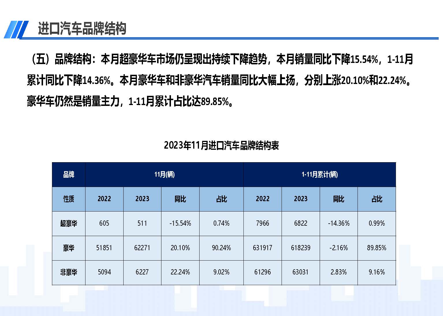 2023年11月中国进口汽车市场情况