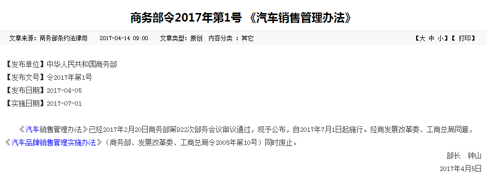 第七条 国务院商务主管部门负责制定全国汽车销售及其相关服务活动的政策规章,对地方商务主管部门的监督管理工作进行指导、协调和监督。