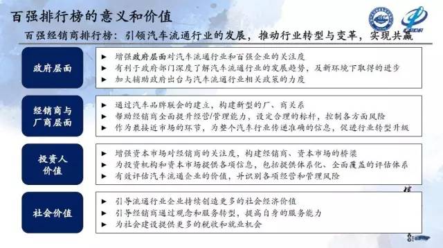2016年5月26日,中国汽车流通协会在雁栖湖国际会展中心进行了中国汽车经销商集团百强排行发布的大型会议。期间,中国汽车流通协会秘书长肖政三发布了2015年百强经销商研究报告。以下为肖政三报告实录:
