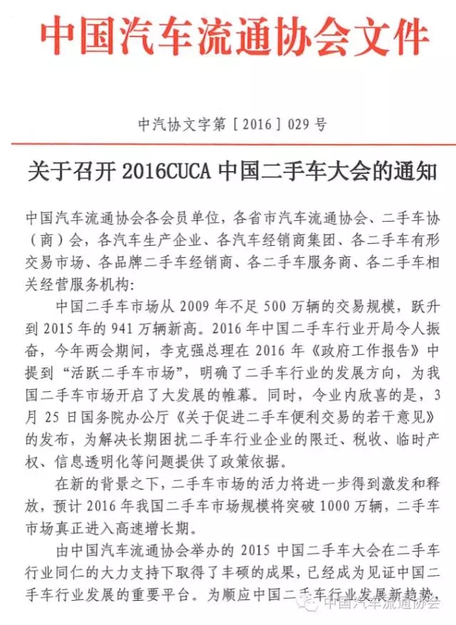 召开2016中国二手车大会的通知