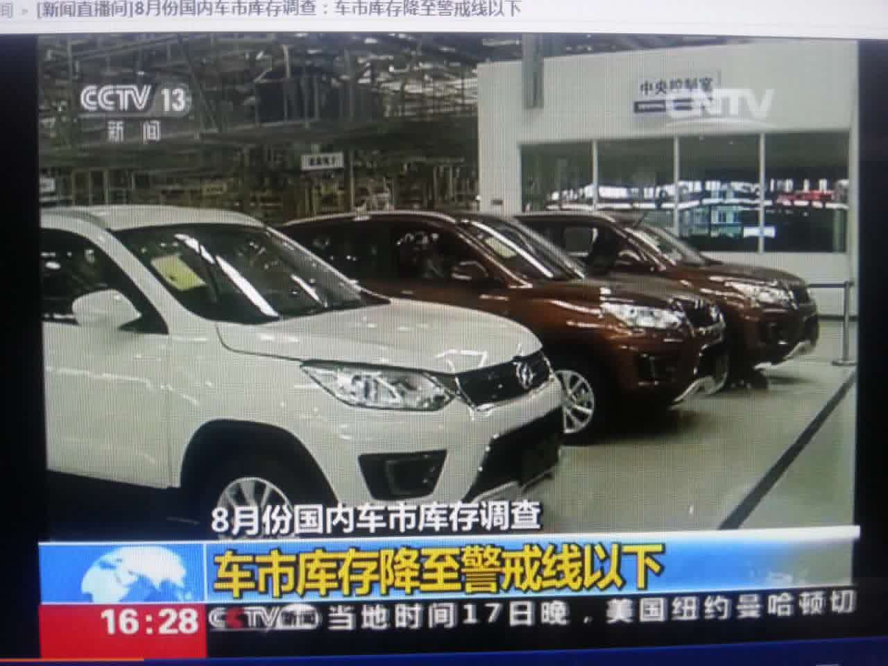 今日(9月19日),央视CCTV13新闻频道据中国汽车流通协会发布的2016年8月份“汽车经销商库存调查结果”报道,8月份汽车经销商综合库存水平回落至警戒线以下。