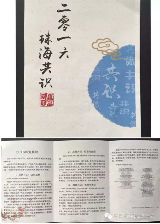 由中国汽车流通协会牵头、广纳业内企业踊跃献策,经领袖峰会探讨论证,终形成三项行业共识,名曰《2016珠海共识》,将成为中国汽车流通行业后续发展之核心指导思想。
