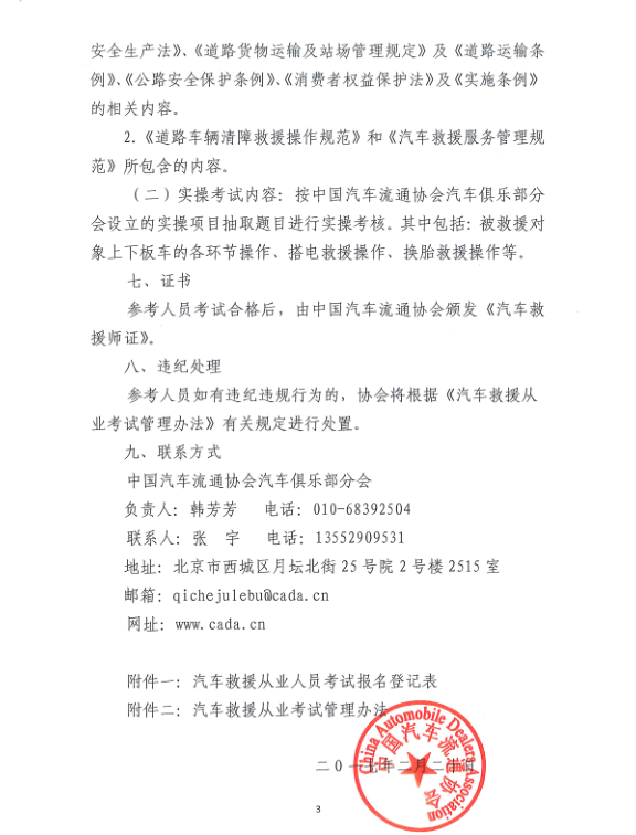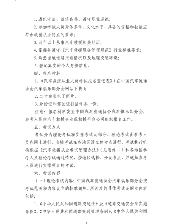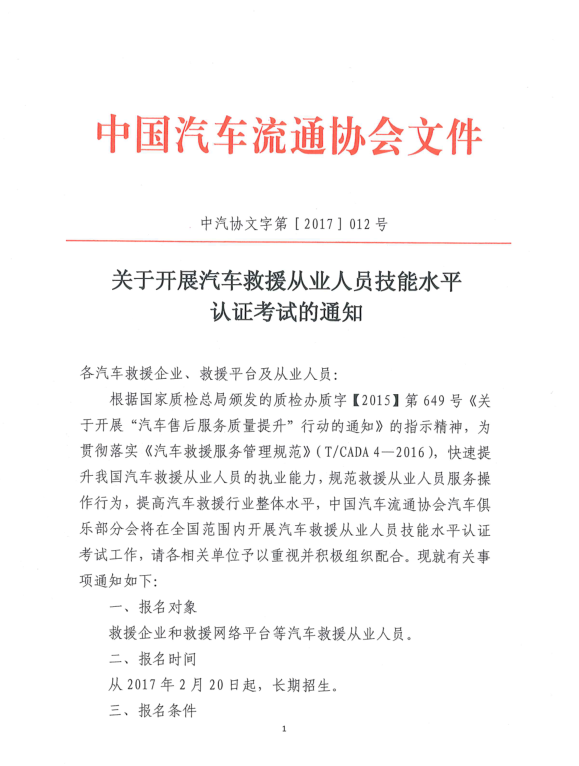 关于开展汽车救援从业人员技能水平 认证考试的通知