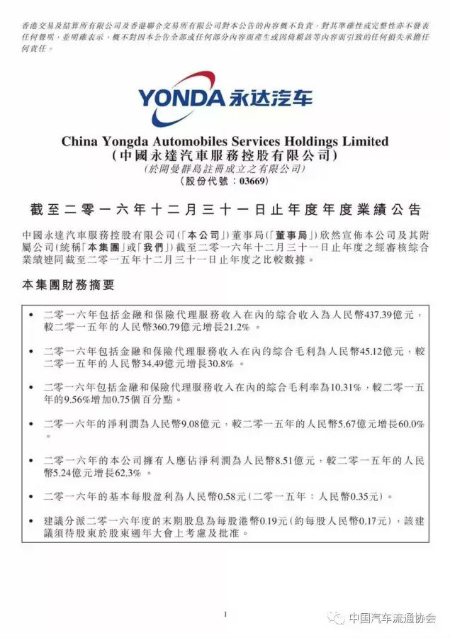 百强汽车经销商集团“永达汽车”2016年度经营业绩公布