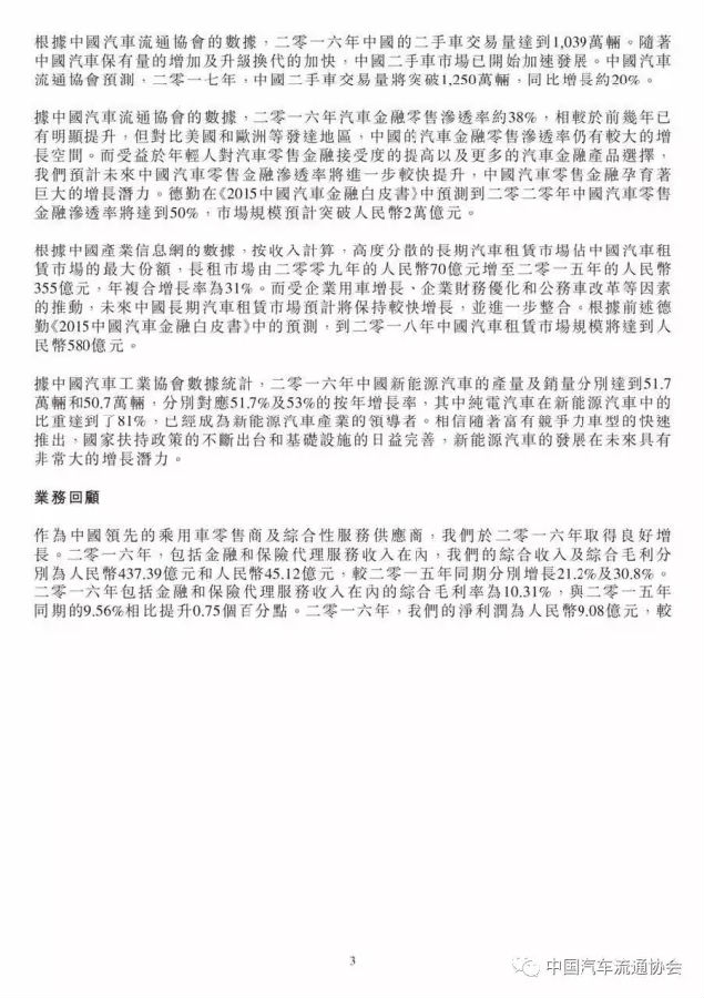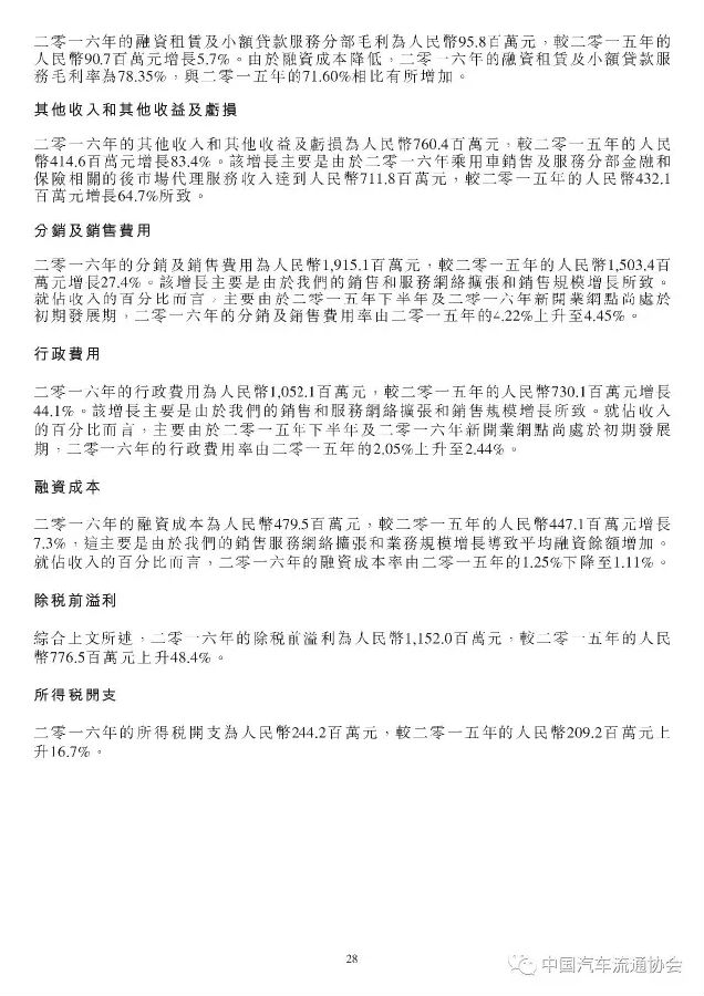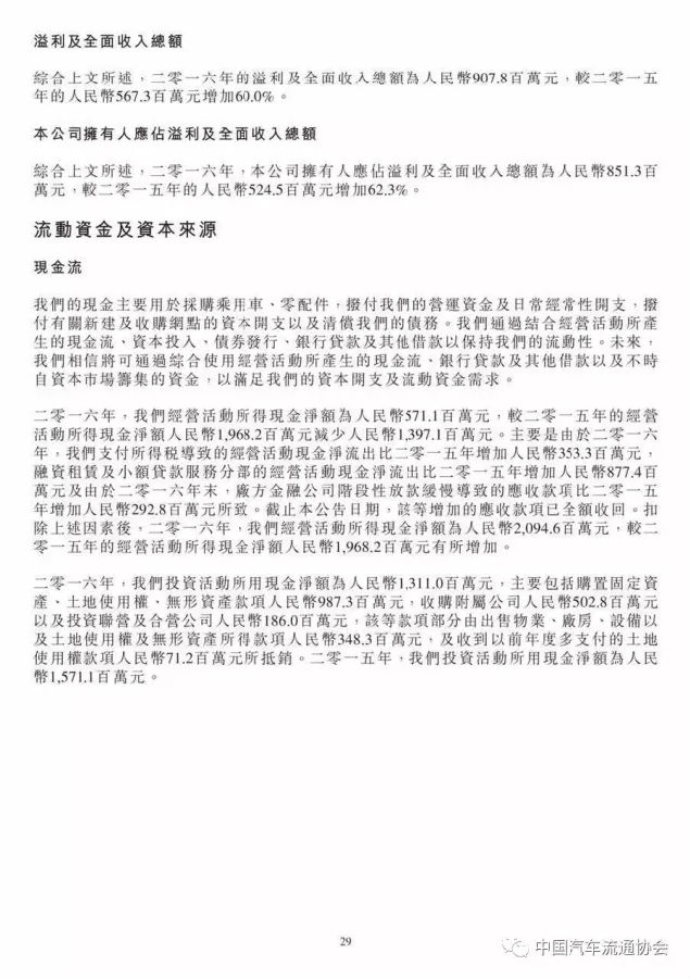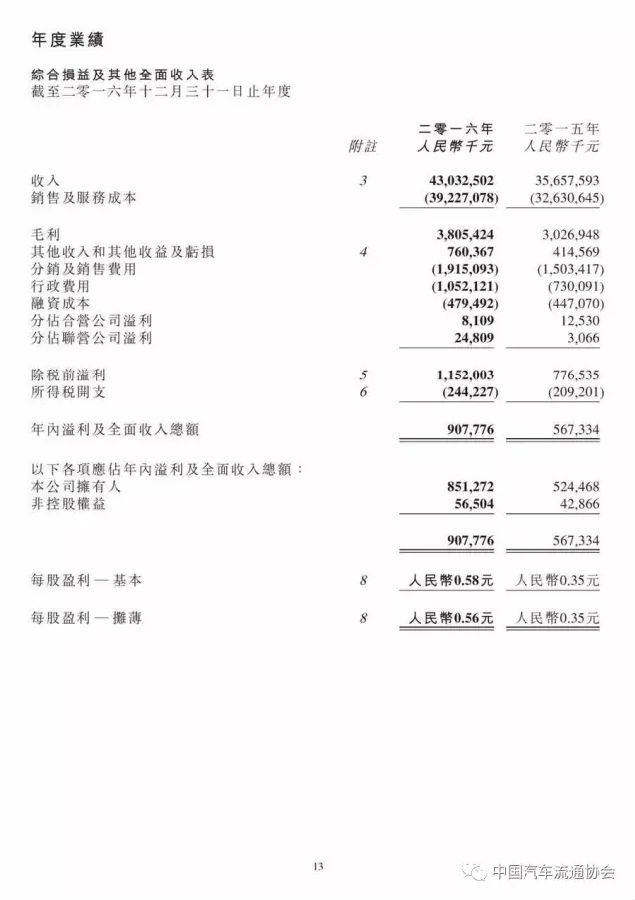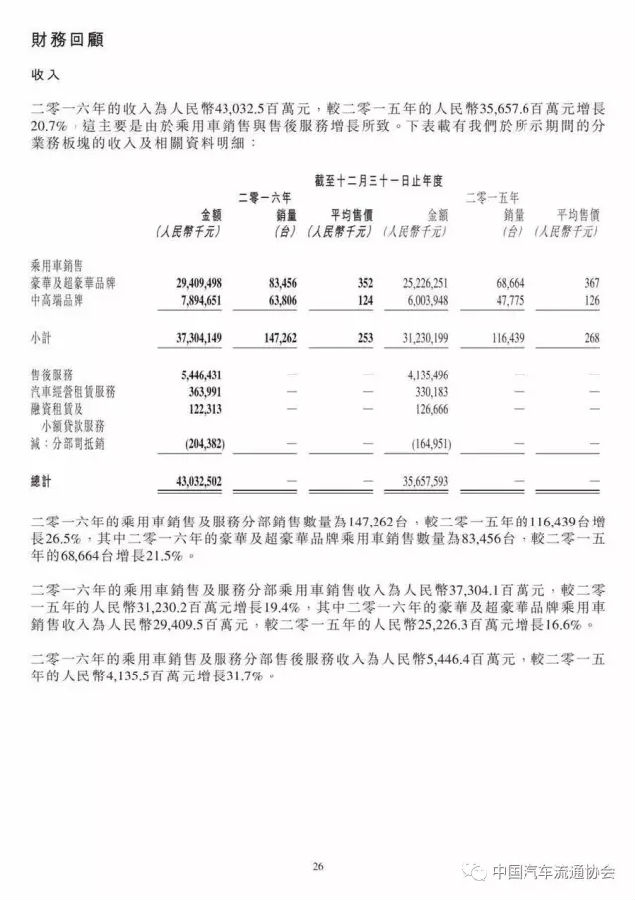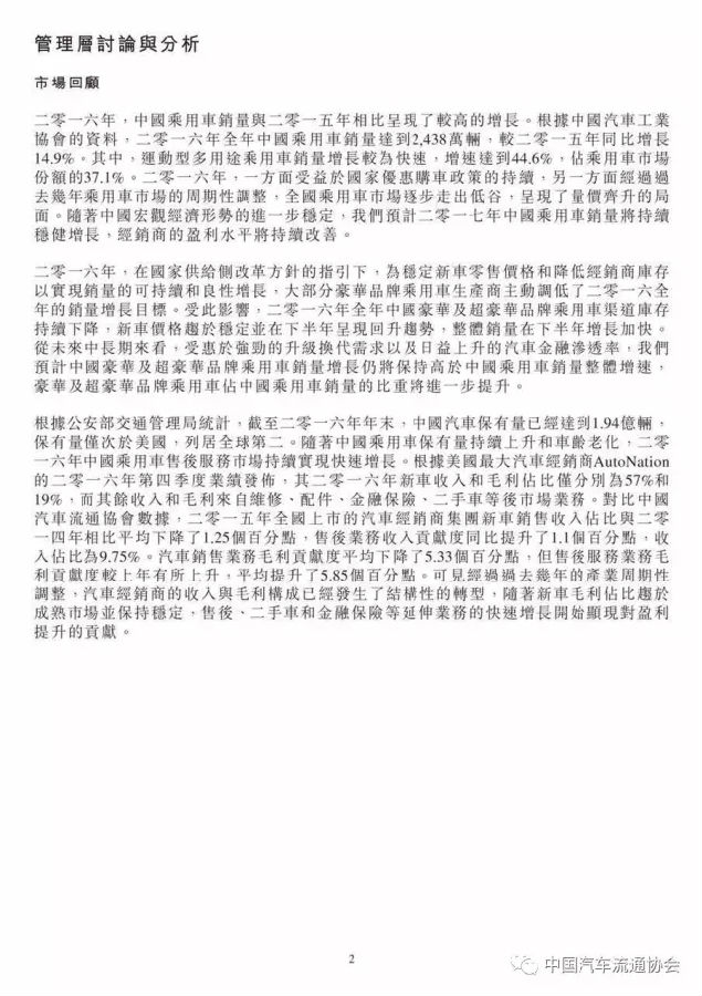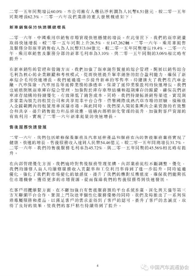 永达汽车在2016年取得了良好的增长,新车销量增长26.5%至147262辆,乘用车销售收入增长19.4%,新车销售毛利率较上年也小幅提升至3.1%。