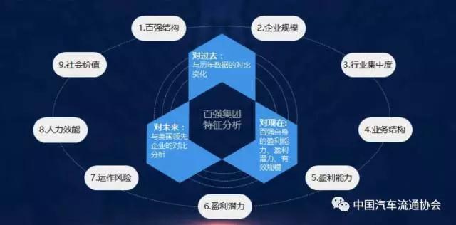 中国汽车流通协会副秘书长宋涛通过“历史数据对比变化”、“百强自身能力表现”和“与美国成熟市场的对比分析”等3个层面,以及整体规模、百强结构、行业集中度、业务结构、盈利能力、盈利潜力、运作风险、人力效能、社会价值等9大维度分析了2017百强排行榜的综合特征。