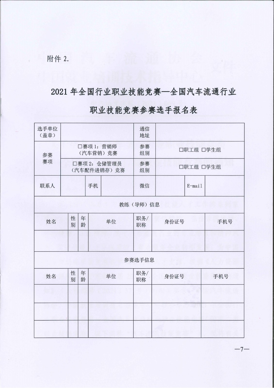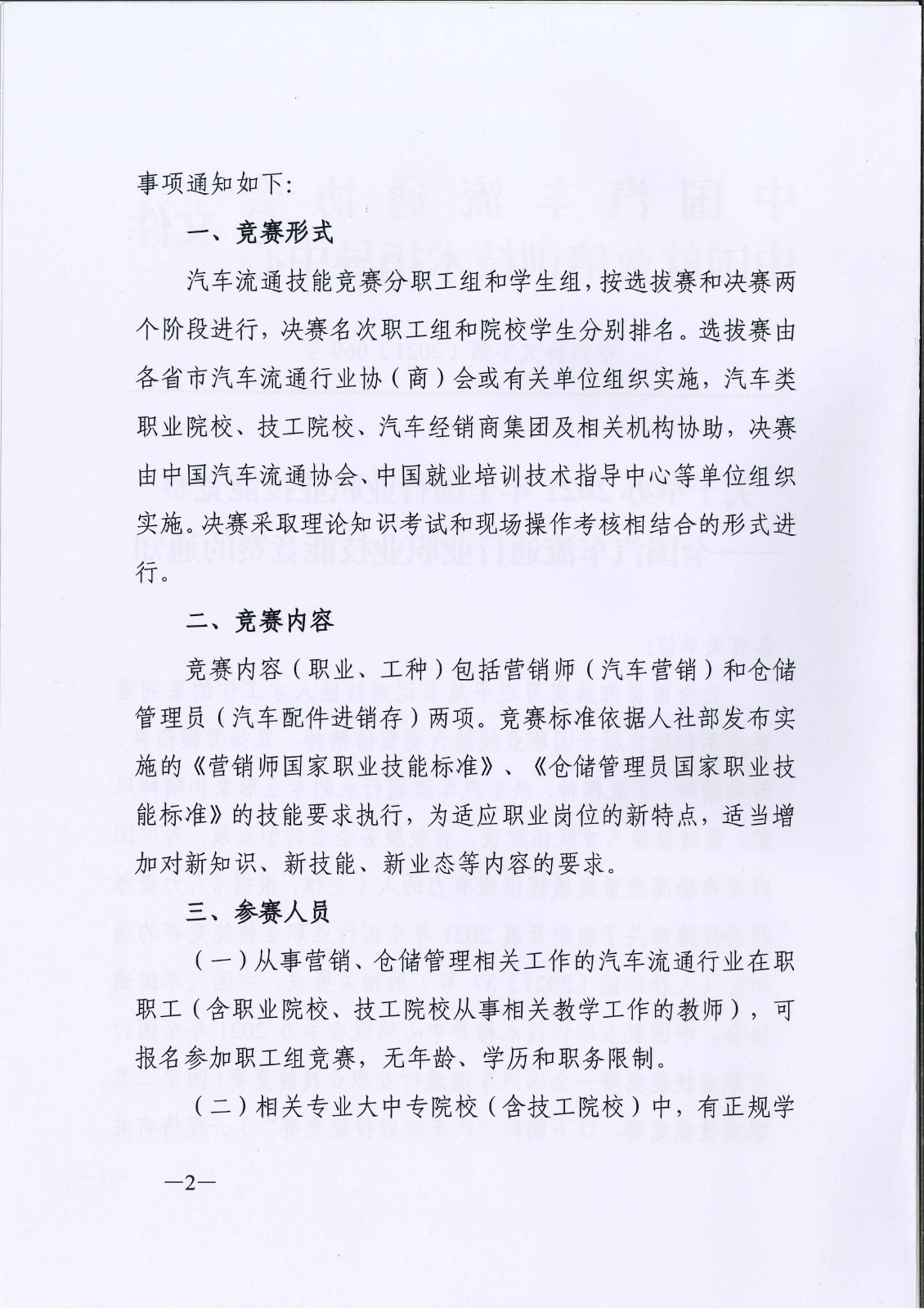 关于举办2021年全国行业职业技能竞赛——全国汽车流通行业职业技能竞赛的通知