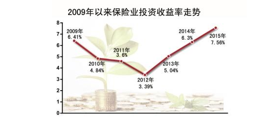 投资端,2015年保险资金运用实现收益7803.6亿元,同比增长45.6%,平均投资收益率7.56%,投资收益率创7年来新高。此前6年 投资收益分别为:6.41%、4.84%、3.6%、3.39%、5.04%、6.3%。2015年,保险公司预计利润2823.6亿元,同比增长 38%。