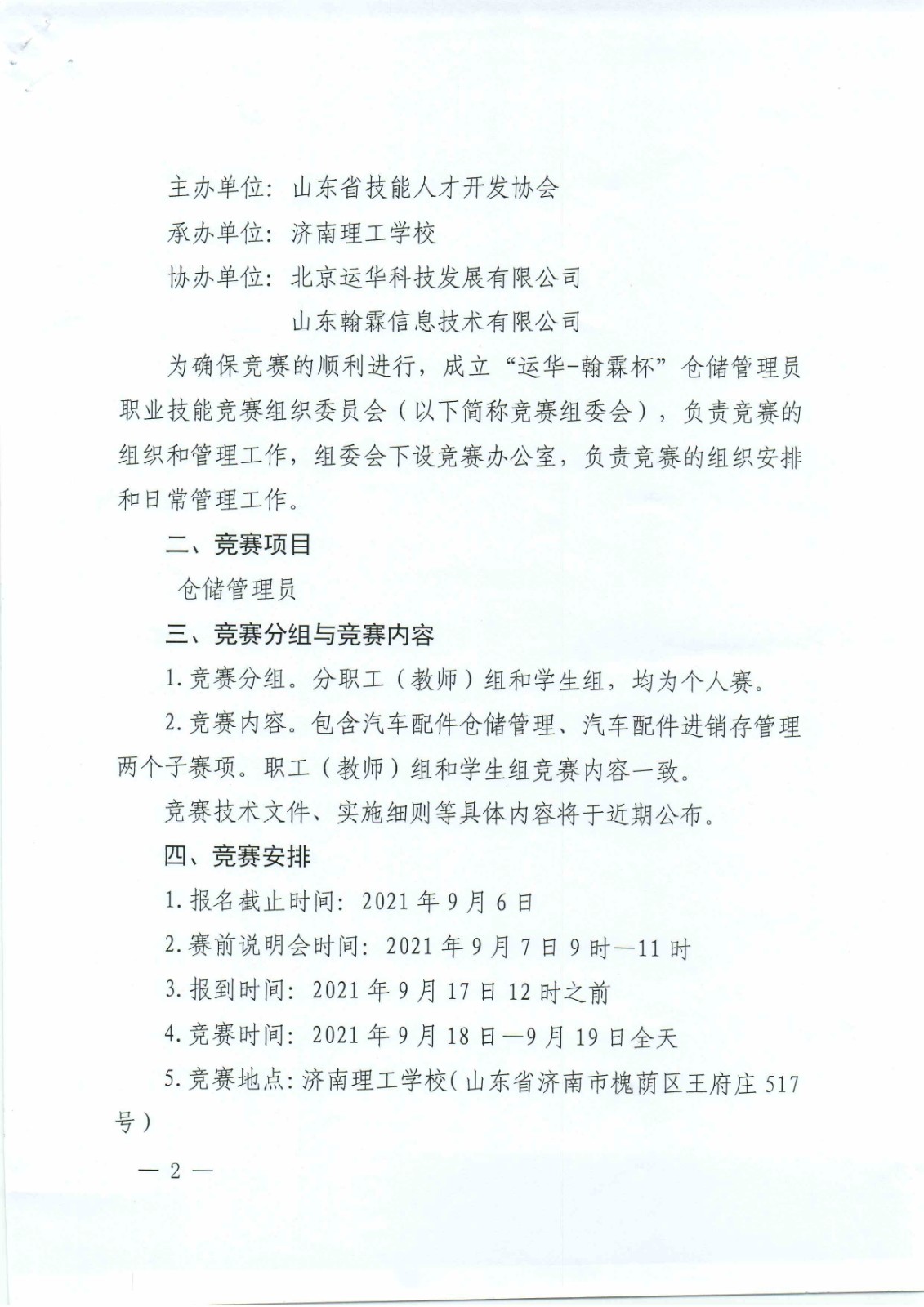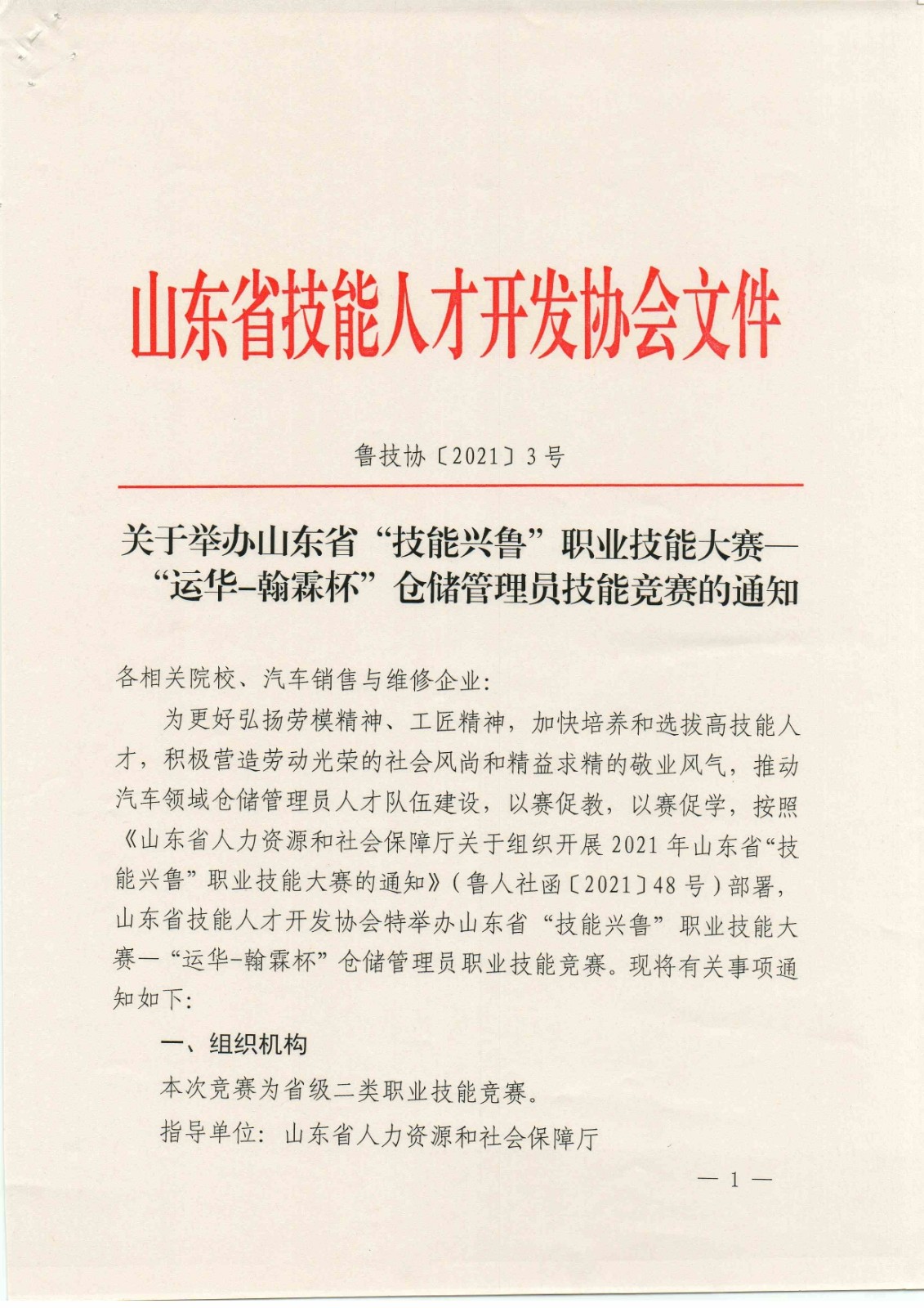 关于举办山东省“技能兴鲁”职业技能大赛--“运华-翰林杯”仓储管理员技能竞赛的通知