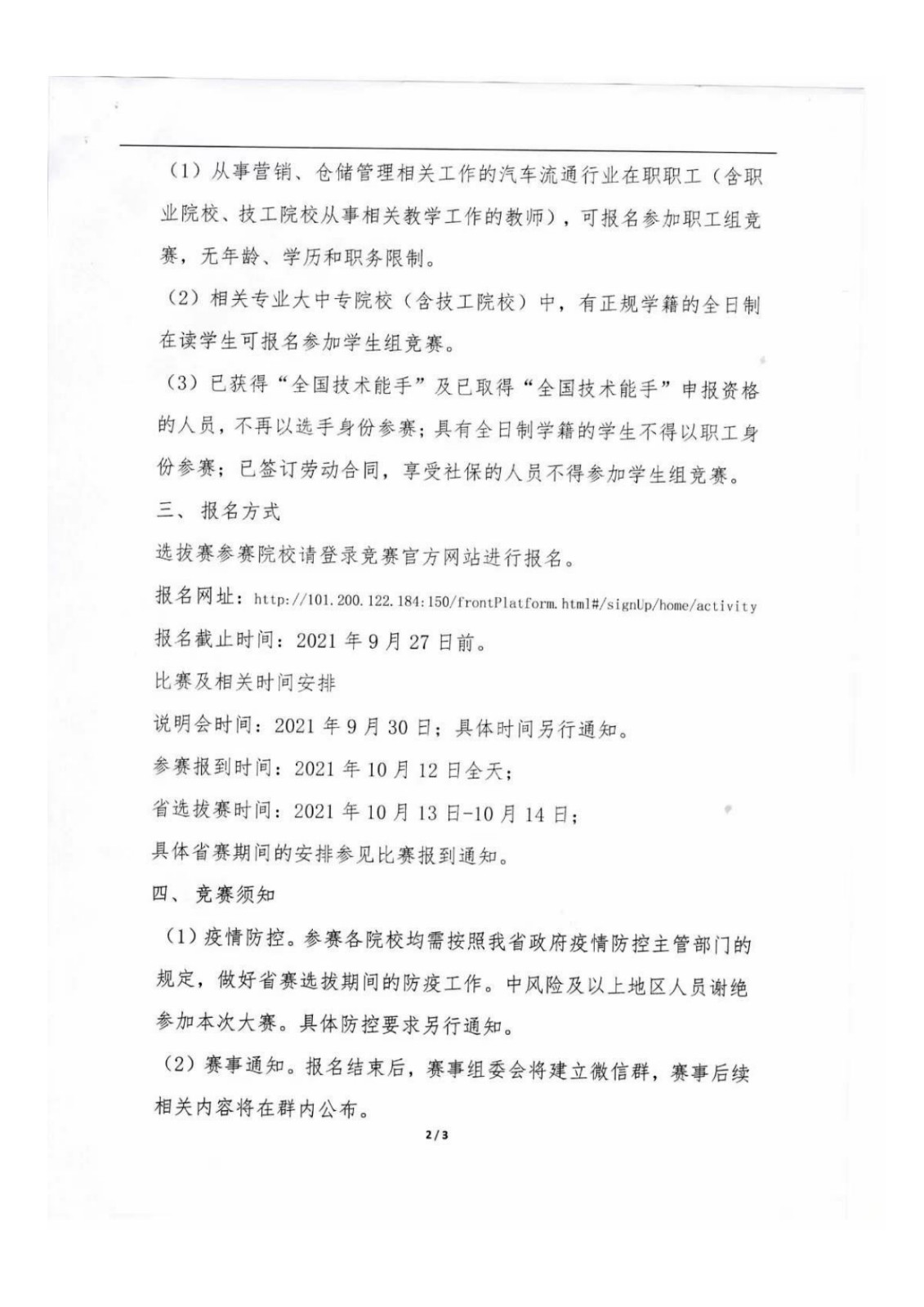 关于2021年全国汽车流通行业职业技能竞赛安徽省选拔赛相关工作安排的通知