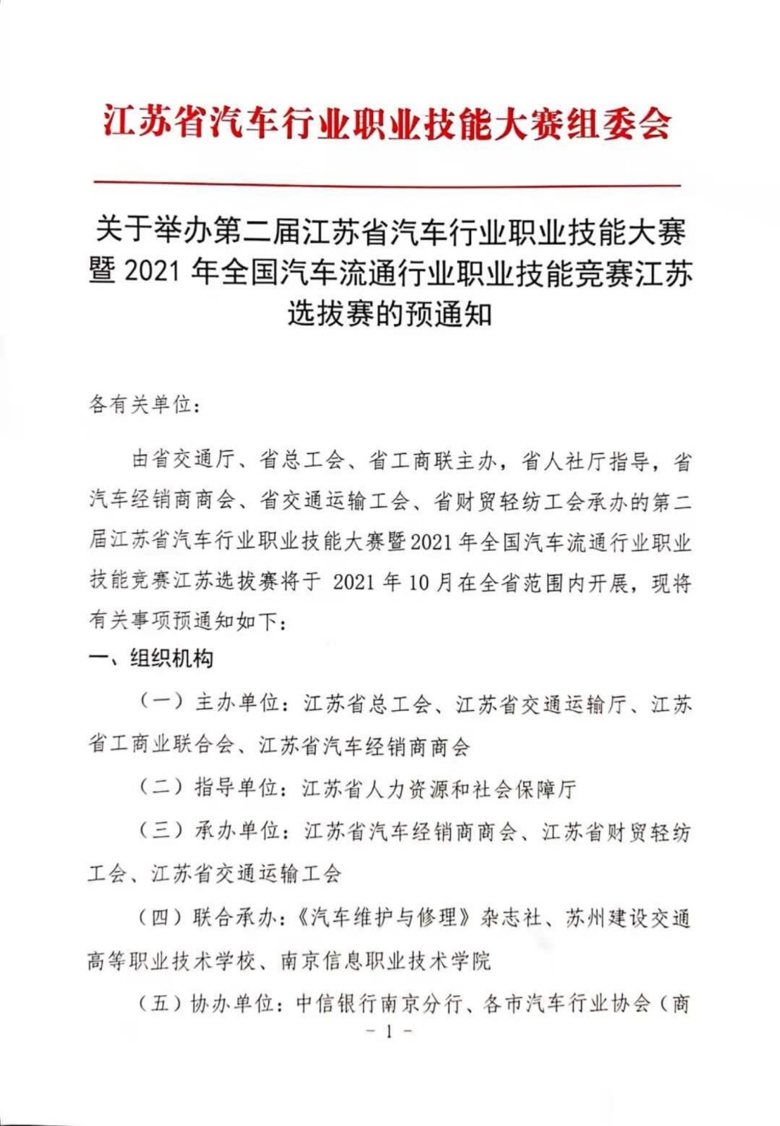 关于举办第二届江苏省汽车行业职业技能大赛暨2021年全国汽车流通行业职业技能竞赛江苏省选拔赛的预通知
