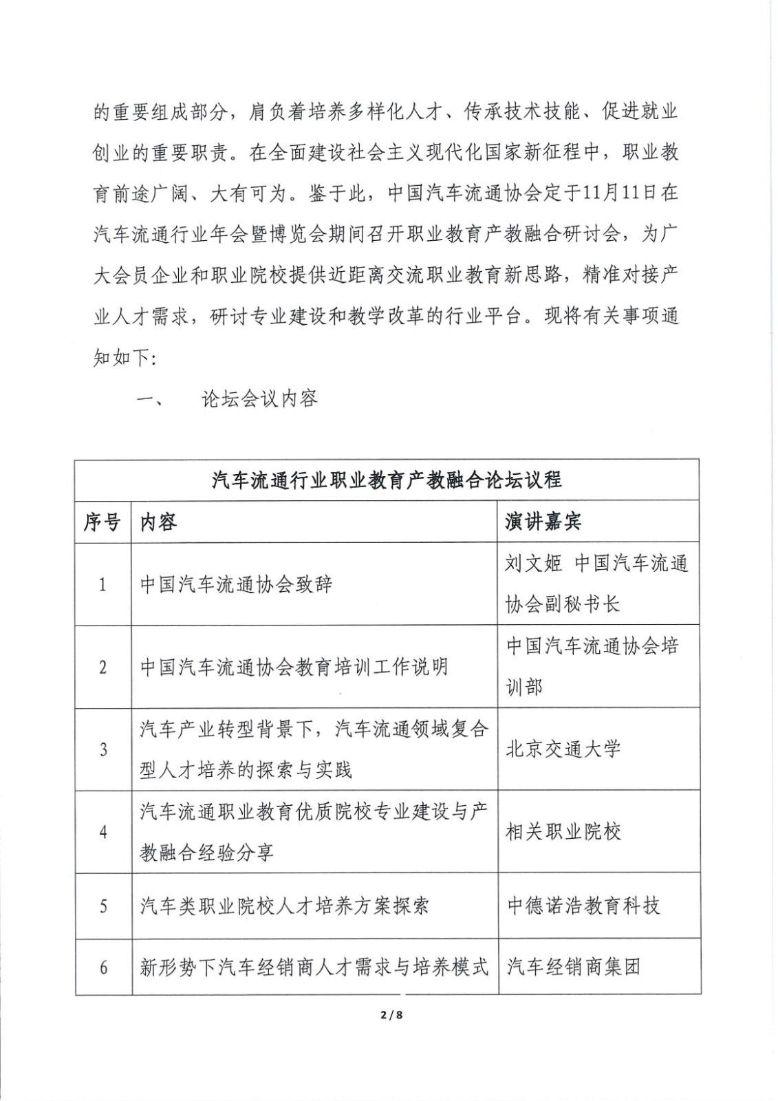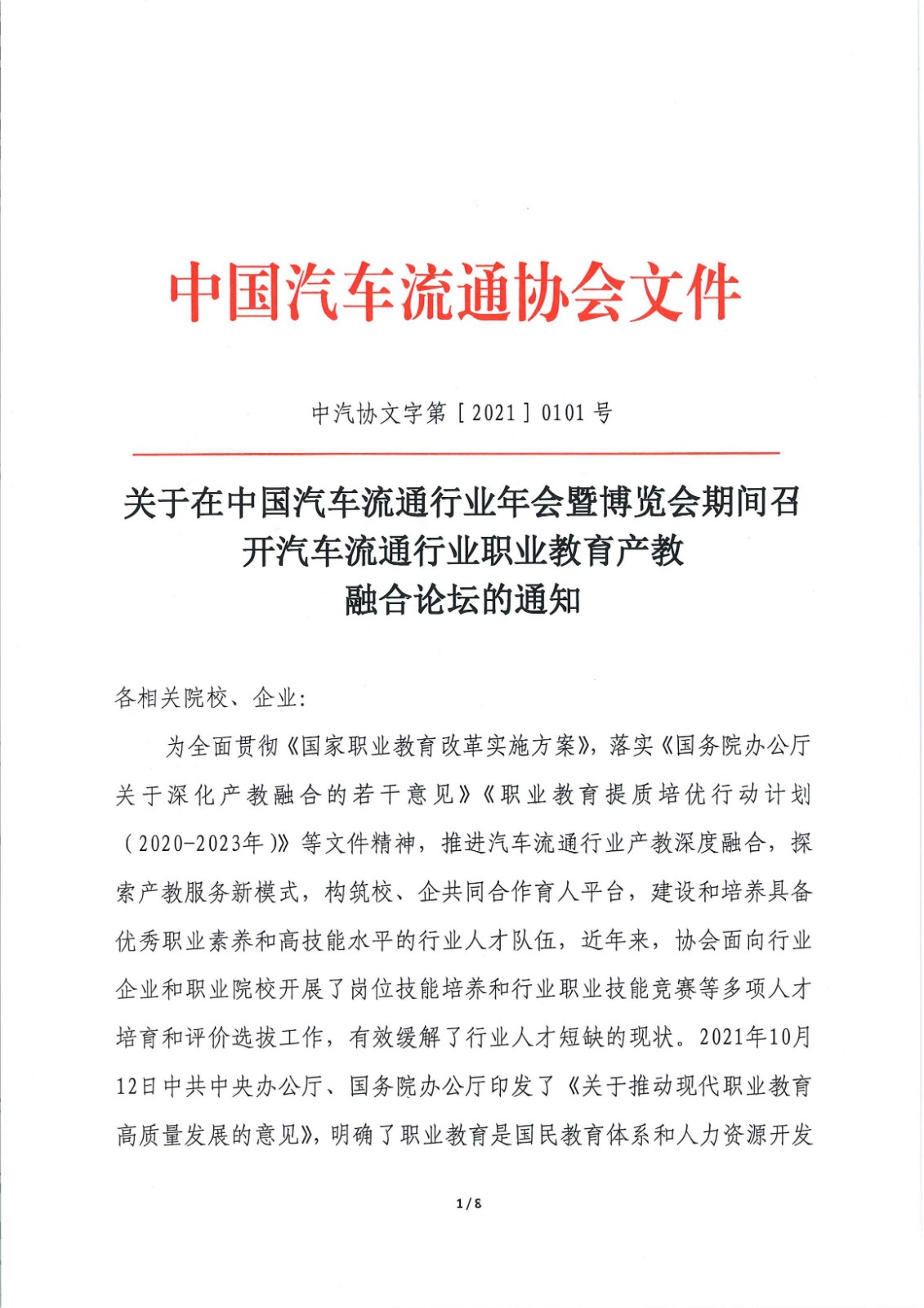 关于在中国汽车流通行业年会暨博览会期间召开汽车流通行业职业教育产教融合论坛的通知
