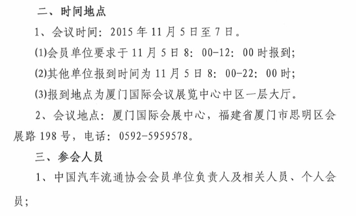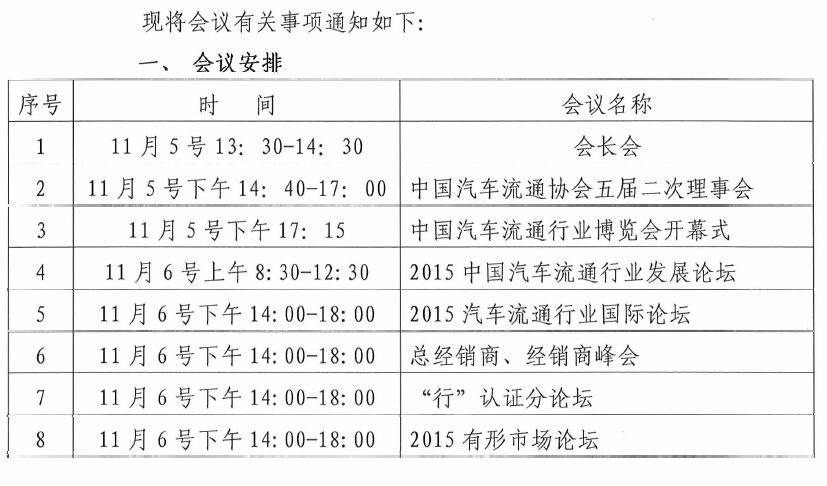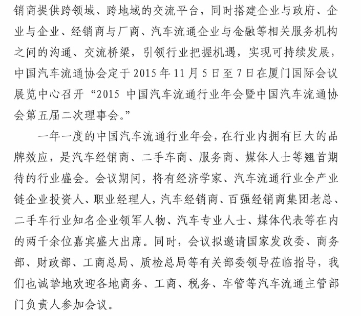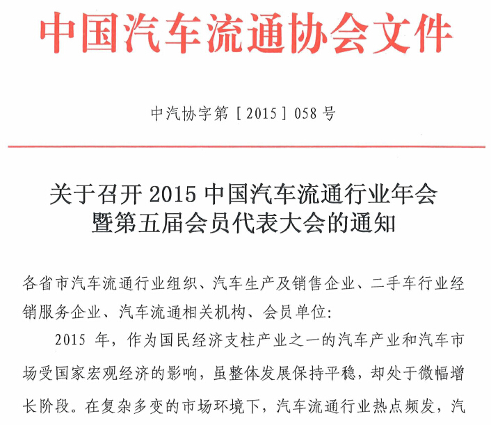 关于召开2015中国汽车流通行业年会的通知