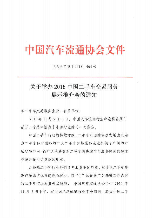 关于举办2015中国二手车交易服务展示推介会的通知