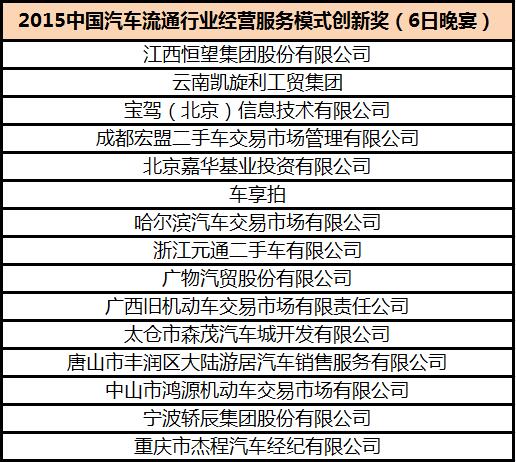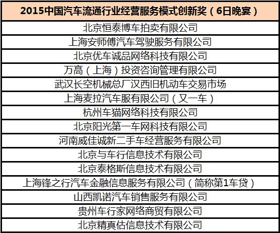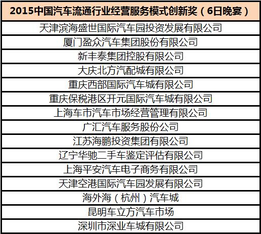 2015年度中国汽车流通行业经营服务模式创新奖获奖名单