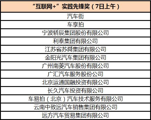 “互联网+”实践先锋奖获奖名单