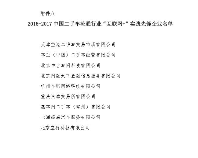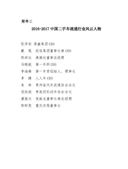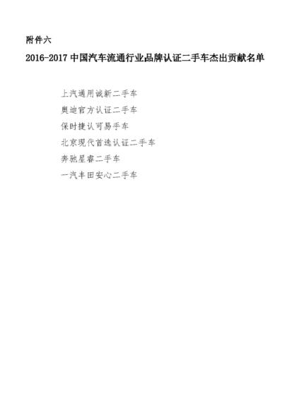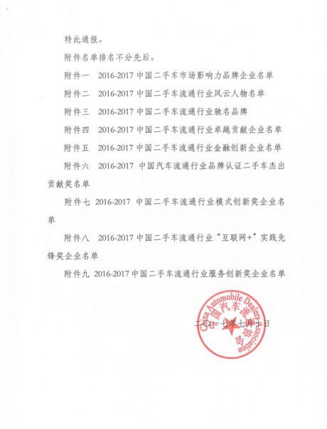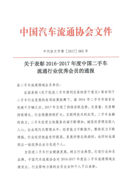关于表彰2016-2017年度中国二手车流通行业优秀会员的通报