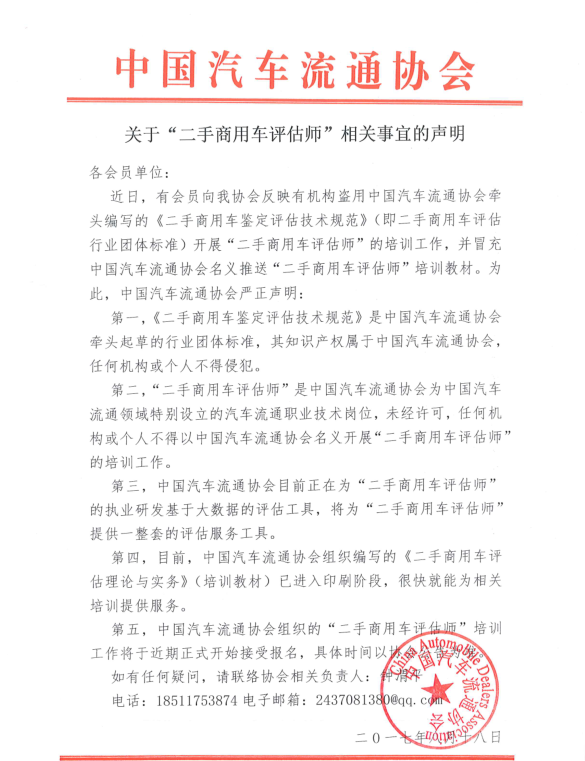 关于“二手商用车评估师”相关事宜的声明