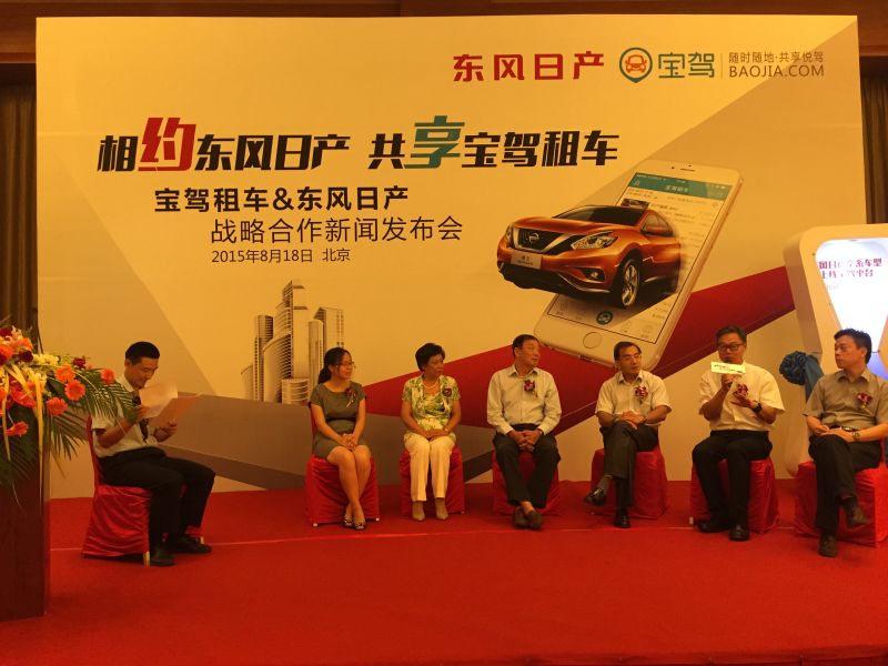 2015年8月18日,东风日产乘用车公司与宝驾租车在北京召开新闻发布会,正式签订全面战略合作协议。此次签约意味着,未来双方将在汽车租赁、新车上门试驾、旧车置换等市场展开全面战略合作。