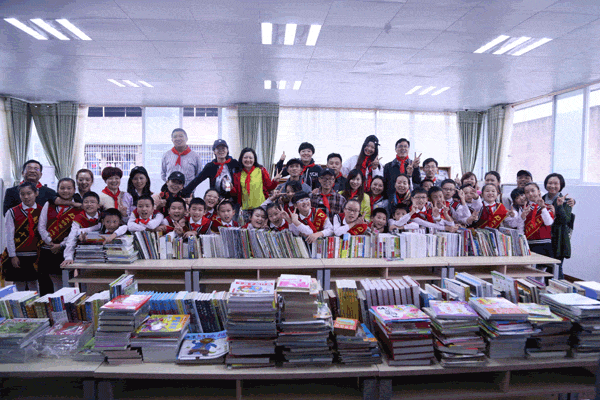 成都爱悦随行公社与孩子们在“爱悦书屋”合影