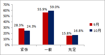 9月份,经销商流动资金状况比上月略有好转,经销商销量增加,流动资金紧张仍未根本改善。认为流动资金“一般”的企业从55.9%升至59.0%;流动资金“充足”的比例从上月的15.8%升至16.8%;流动资金“紧张”的比例从上月的28.3%降至24.3%。