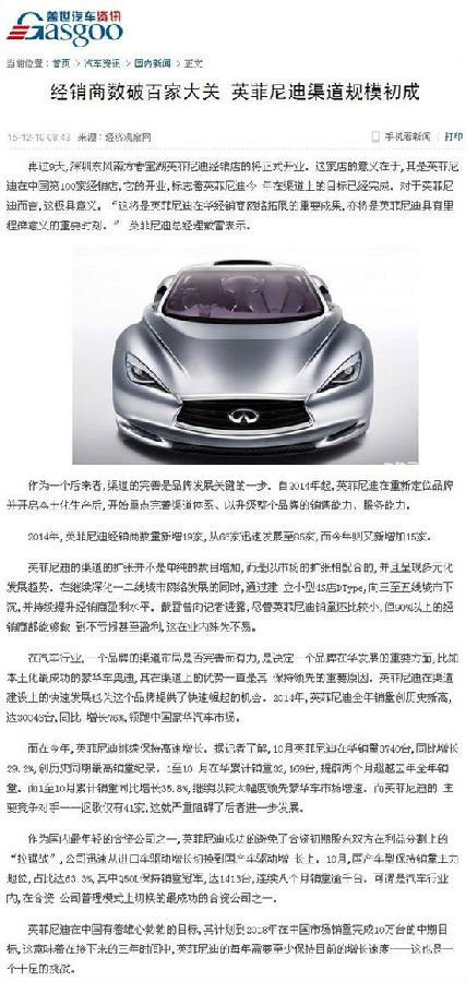 经销商数破百家大关 英菲尼迪渠道规模初成