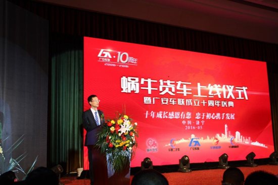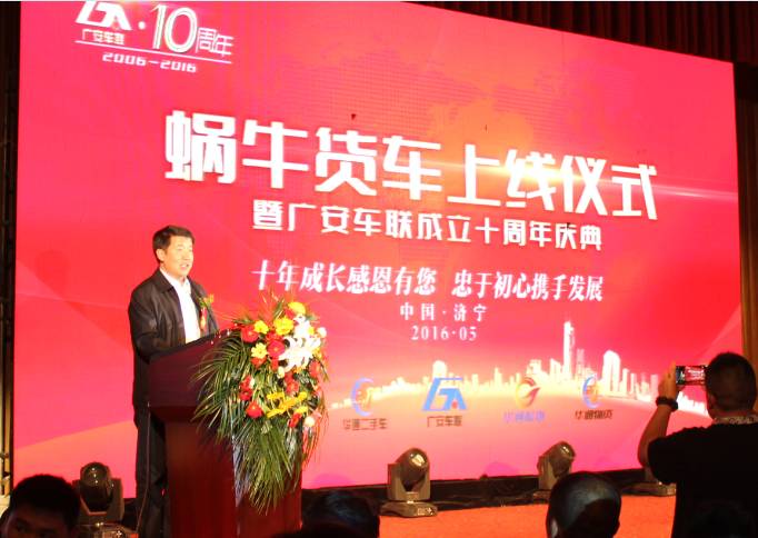 庆典开始,首先由广安车联科技股份有限公司董事长何兆广发表广安车联成立十周年致辞。在致辞中,何兆广董事长带领所有嘉宾一起回顾了过去十年创业的艰辛,对政府领导给予广安事业的支持与爱护,中国汽车流通协会和山东汽车流通协会对广安发展的指导促进,福田、重汽、一汽、东风等合作伙伴一路走来的相扶相助表示感谢,总结了广安车联在商用车车联网领域取得的骄人成就,满怀激情的展望商用二手车事业的未来发展。何兆广董事长表示,广安车联过去十年取得的发展只是中国商用车事业进步的一个缩影,未来大地广阔,尽等勇士驰骋!