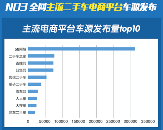 公平价抓取全网33个二手车电商平台车源信息,其中10月份车源发布量top10中前4位被生活服务平台和媒体包揽,后6位为二手车平台。可以看出生活服务平台的影响力之大,平台自身流量不可小视。二手车平台车源争夺之非常激烈。