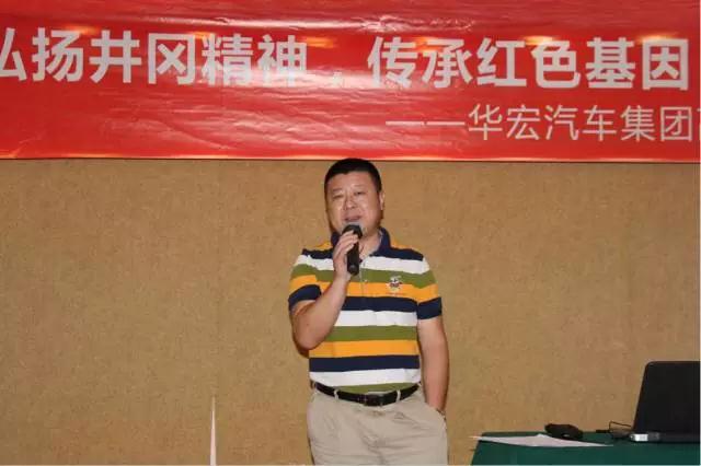 在23日下午举行的大会上,戴华发表重要讲话。他在讲话中深情地表达了对毛泽东等老一辈无产阶级革命家创建革命根据地的崇敬之情,表达了在井冈山研修期间,被井冈山红色历史深深感动的心得与体会。他在讲话中指出,华宏汽车集团是民营企业,是在中国特色社会主义道路上成长起来的企业,我们必须自觉接受中国共产党的领导、自觉追随党辉煌的历史、自觉追随党提出的实现中华民族伟大复兴的历史使命,这是我们前进的方向,也是我们最高的理想、最大的责任。我们要把井冈山精神转变为生产力、转变为我们前进的动力、转变为我们的团队精神。当前,中国汽车流通业出现了许多新情况、新问题、新机遇和新挑战,我们要坚定把华宏建设成百年老店的信念,以井冈山敢闯新路的创新精神,探寻企业创新的突破口、新举措,实现企业更大的跨越。
