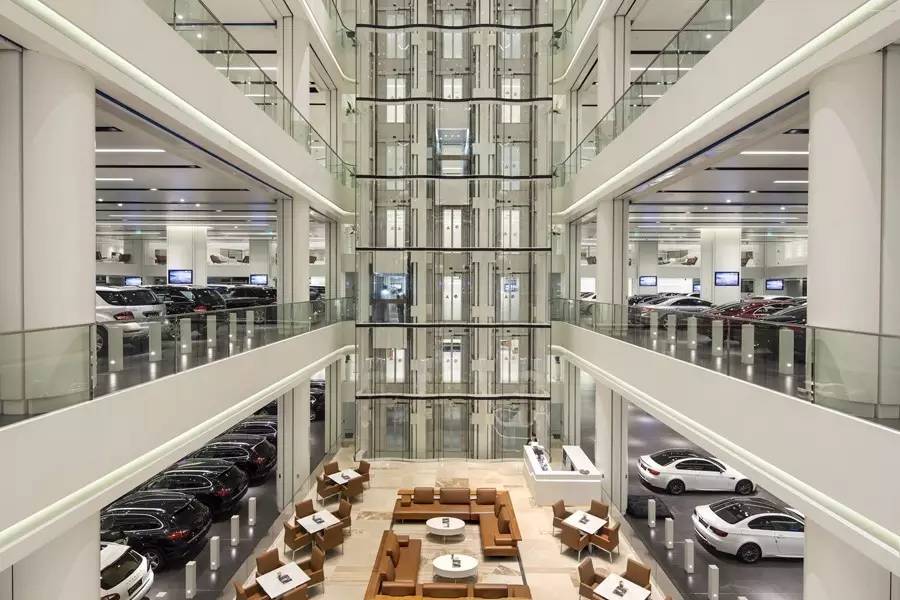 除了国际化的展厅,在澳康达,你感受到的还有震撼的名车海洋:乘坐全透明观光电梯自下而上,3000台名车尽收眼底,堪比国际顶级车展。