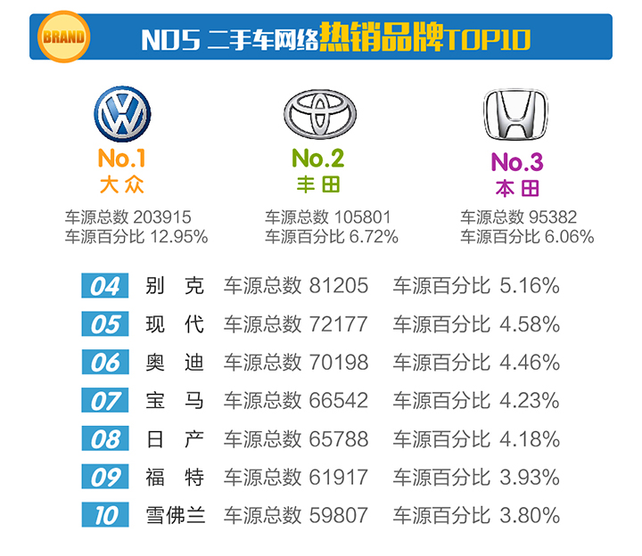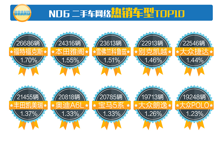 五、2017年10月二手车热销品牌TOP10