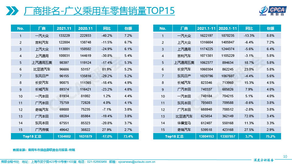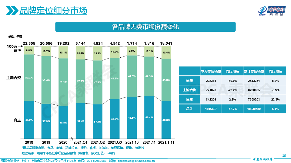 (含各品牌大类市场份额变化及各品牌大类下不同车型大类增速、销量和份额——2021年11月及累计)