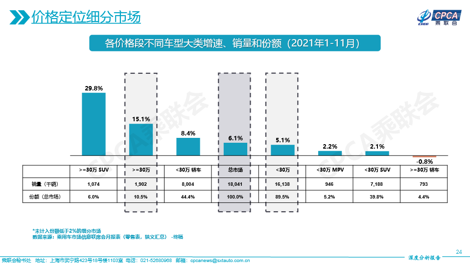 (含各价格段市场份额变化及各价格段不同车型大类增速、销量和份额——2021年11月及累计)